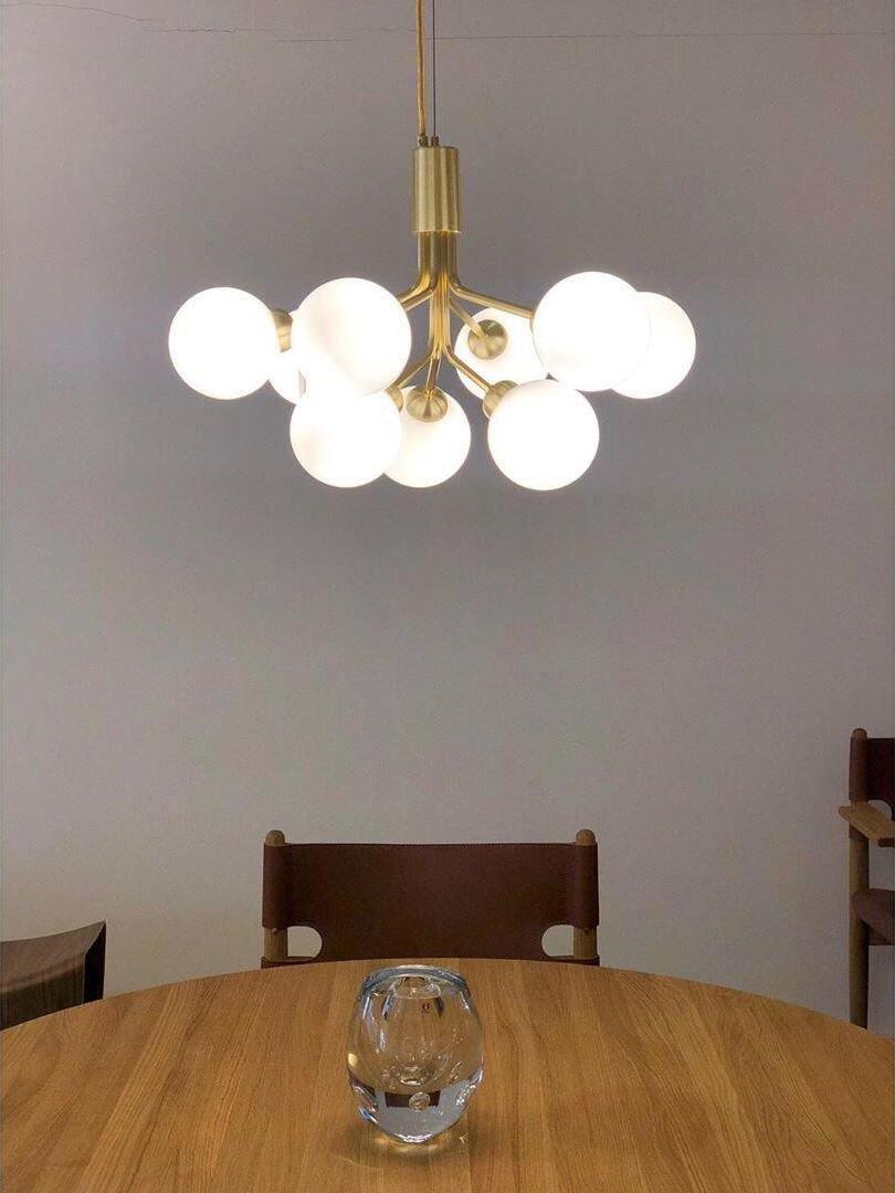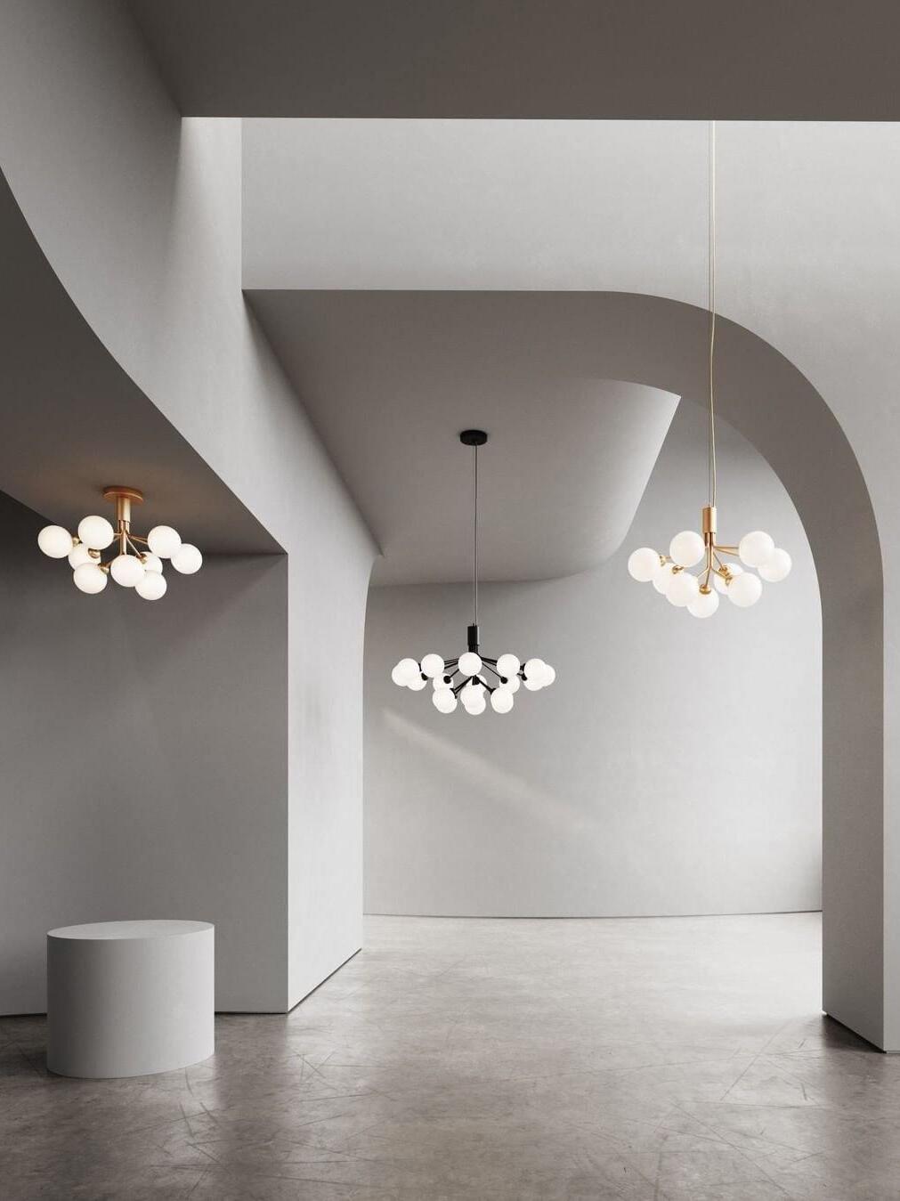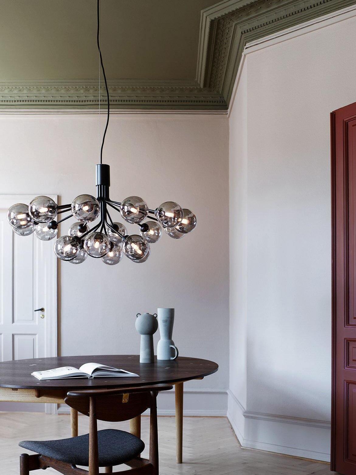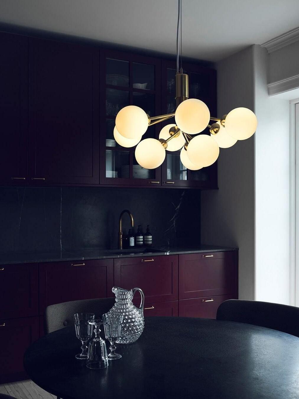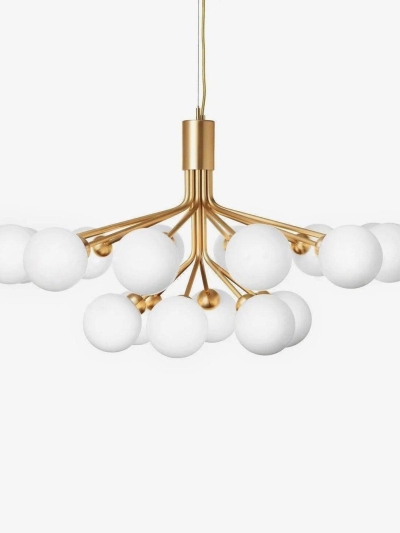 Ispirandosi ai fiori, Sofie Refer ha disegnato la nuova collezione di lampadari Apiales. La collezione è composta da due lampadari con 9 o 18 globi in vetro soffiato a bocca, disponibili con finitura ottone spazzolato dorato o nella morbida finitura nero satinato. Da un rosone realizzato appositamente, i bracci si aprono come steli di fiori, da cui la luce si diffonde con grazia.