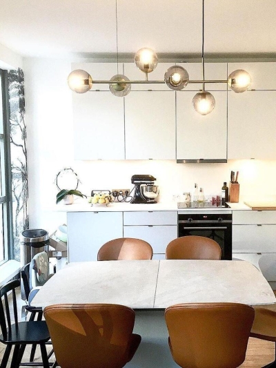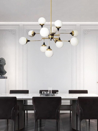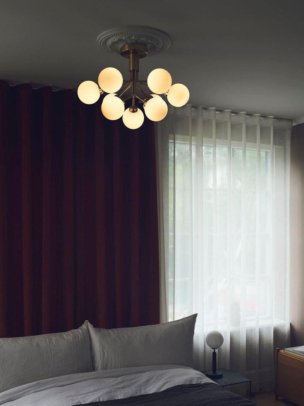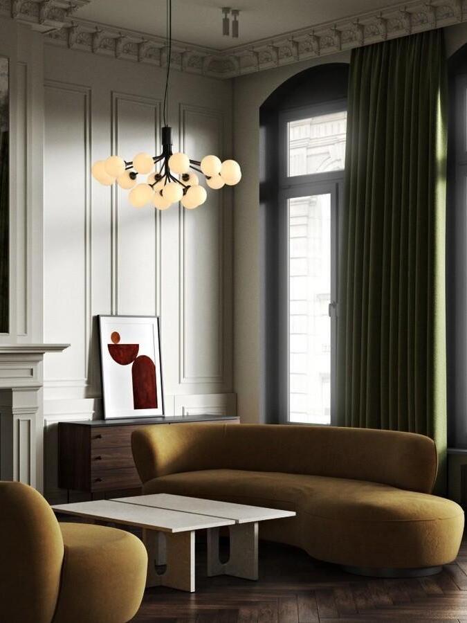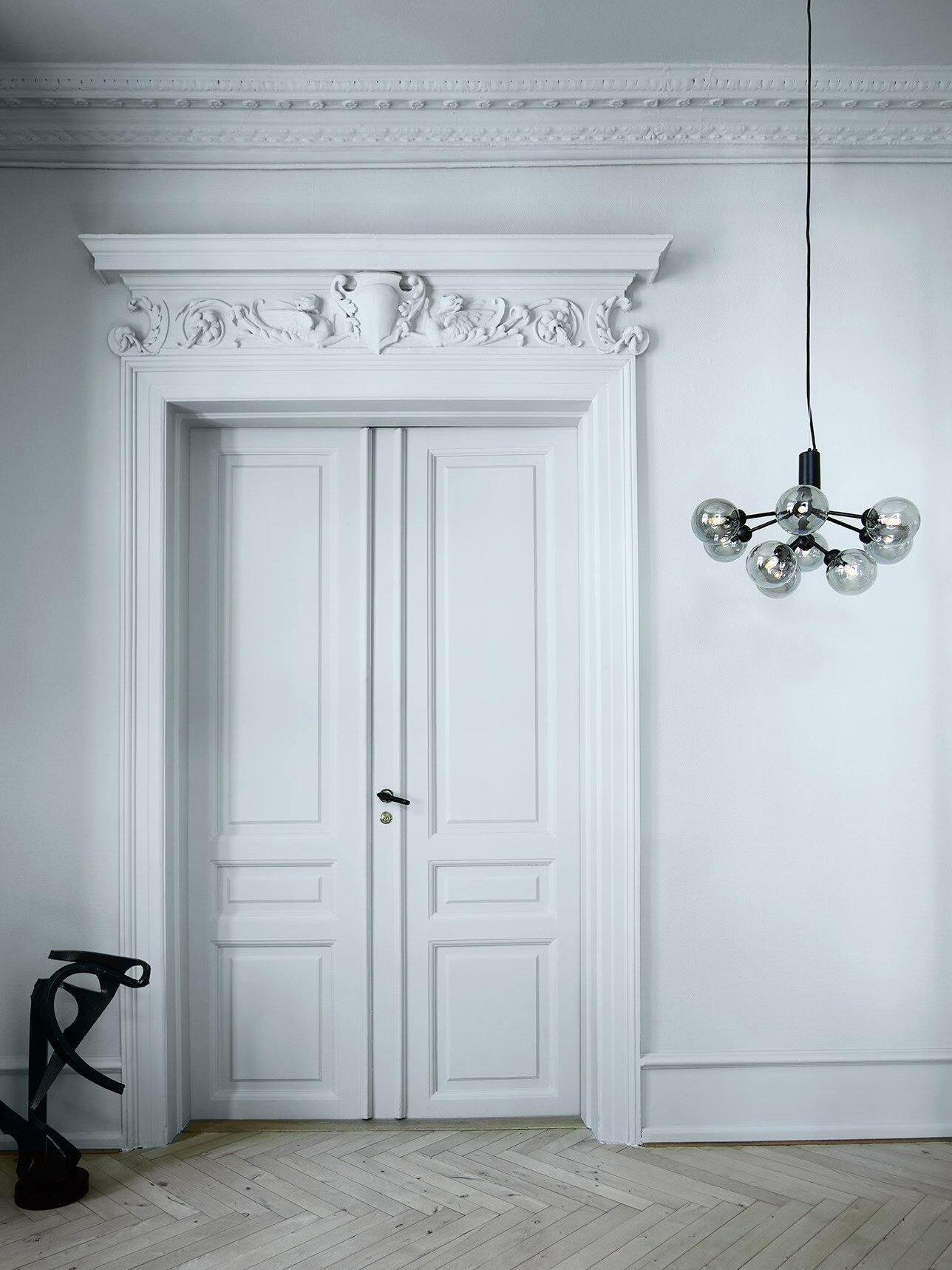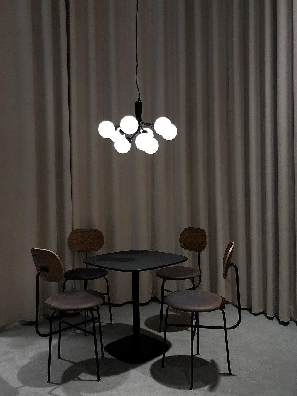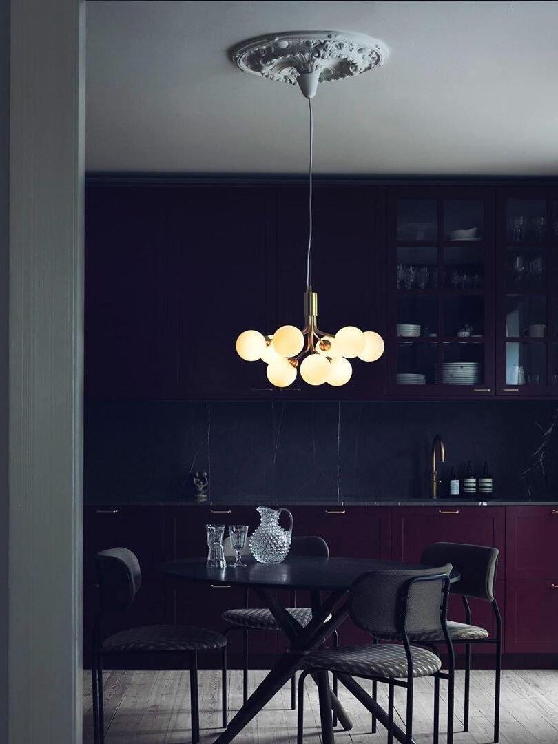 Ispirandosi ai fiori, Sofie Refer ha disegnato la nuova collezione di lampadari Apiales. La collezione è composta da due lampadari con 9 o 18 globi in vetro soffiato a bocca, disponibili con finitura ottone spazzolato dorato o nella morbida finitura nero satinato. Da un rosone realizzato appositamente, i bracci si aprono come steli di fiori, da cui la luce si diffonde con grazia.